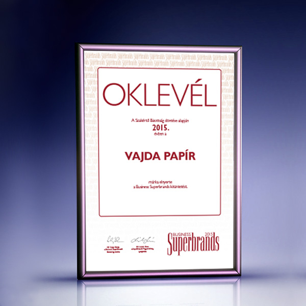 A 2014-es elismerés után 2015-ben második alkalommal sikerült megszereznie Vajda-Papír Kft.-nek a Business Superbrands címet.