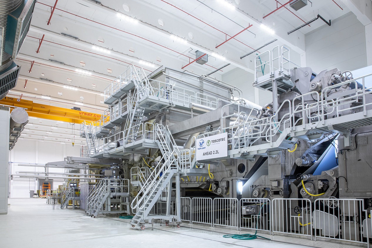 Vajda Attila, a Vajda-Papír ügyvezető igazgatója elmondta, hogy a cégcsoport 2018 óta saját maga termeli dunaföldvári üzemében a gyártáshoz szükséges higiéniai alappapír jelentős részét. A termelés felfutásával azonban szükség volt a kapacitás növelésére, és a közben lezajlott covid-járvány miatt az alapanyag ellátás biztonságát is növelni szerették volna. Ezért a második beruházási ütemben szükségessé vált raktár, papírbála kezelő, papírgyártó gépcsarnok és anyagraktár építése is. A 14 212 négyzetméter alapterületű új üzemhez közel 10 ezer négyzetméternyi utat is építettek. A beruházás, amellyel háromszorosára (115 ezer tonnára) növelték a cég alappapír gyártási kapacitásait, 16 milliárd forintba került, a fejlesztést a magyar kormány 5,5 milliárd forinttal támogatta. A fejlesztéssel Európa legnagyobb higiéniai papírgyártó kapacitása jött létre Dunaföldváron, és lehetővé vált, hogy a vállalatcsoport teljes alappapír igényét a saját üzemünkben állítsuk elő, sőt erősítsük külpiaci pozícióinkat is – hangsúlyozta Vajda Attila. Megjegyezte, hogy a beruházást zöld kötvények kibocsátásával finanszírozták, a Magyarországon működő ipari termelő vállalatok közül elsőként bocsátottak ki zöld kötvényt, 9,9 milliárd forint értékben.